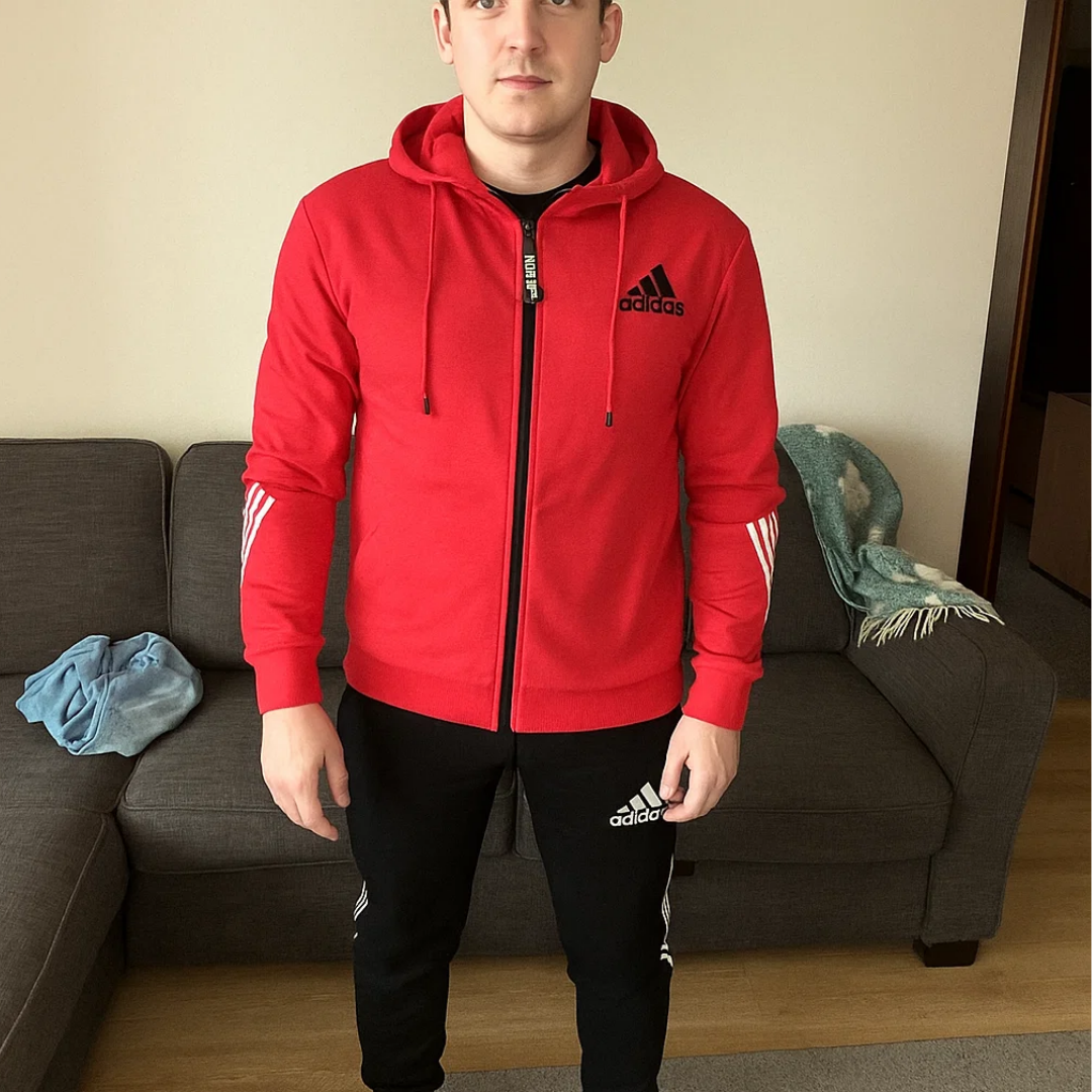 The AD Sportswear Training Suit is crafted from a breathable and flexible fabric blend. It allows for unrestricted movement whether you’re working out or relaxing. Soft on the skin yet durable, it ensures lasting comfort during all-day wear.